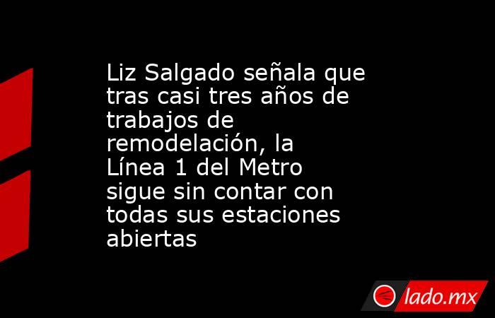 La Diputada en el Congreso de la Ciudad de México, Liz Salgado, recordó que a casi tres años de iniciados los trabajos de remodelación de la Línea 1 del Sistema de Transporte Colectivo Metro, esta continúa sin contar con todas las estaciones abiertas, a pesar de que el Gobierno de la Ciudad de México, había planteado que la obra quedaría en un año.