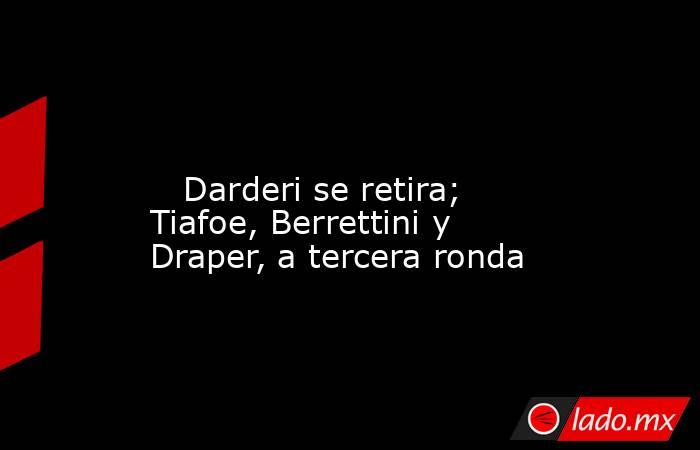 El italiano Luciano Darderi abandonó por enfermedad su partido ante el estadounidense Francis Tiafoe, decimosexto favorito, que avanzó a la tercera ronda del Masters 1000 de Madrid igual que el transalpino Matteo Berrettini que remontó a Marcos Giron, el británico Jack Draper que superó al neerlandés Tallon Griekspoor.
