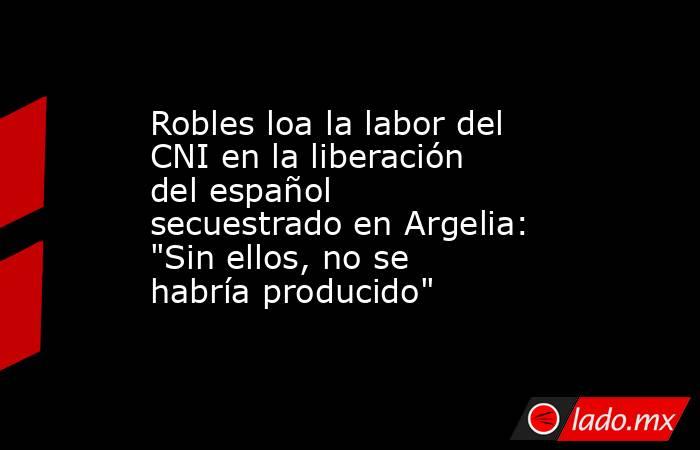 La ministra de Defensa, Margarita Robles, ha puesto este lunes en valor el trabajo del Centro Nacional de Inteligencia (CNI) en la liberación del español secuestrado en Argelia. "Sin el CNI, la liberación no se habría producido", ha afirmado.
