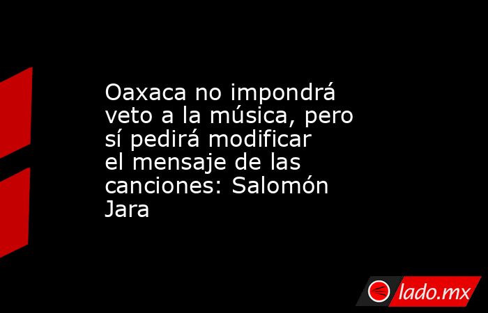 En Oaxaca no habrá veto por decreto a los corridos tumbados ni a otros géneros musicales, pero sà se enviará una carta a los cantautores, entre ellos Peso Pluma, Natanael Cano y otros, para que modifiquen las letras de sus canciones, dijo el gobernador Salomón Jara Cruz, a fin de seguir disfrutando de su música, pero sin hacer apologÃa de la violencia.