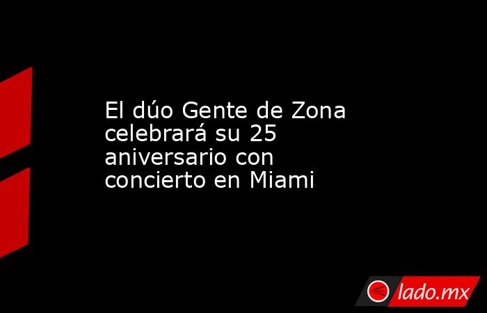 Miami, 28 ene (EFE).- El dúo cubano Gente de Zona celebrará su 25 aniversario con un concierto en Miami, en el sur de Florida (EEUU), el próximo 7 de junio, según informó este martes la promotora Loud and Live, responsable del recital.