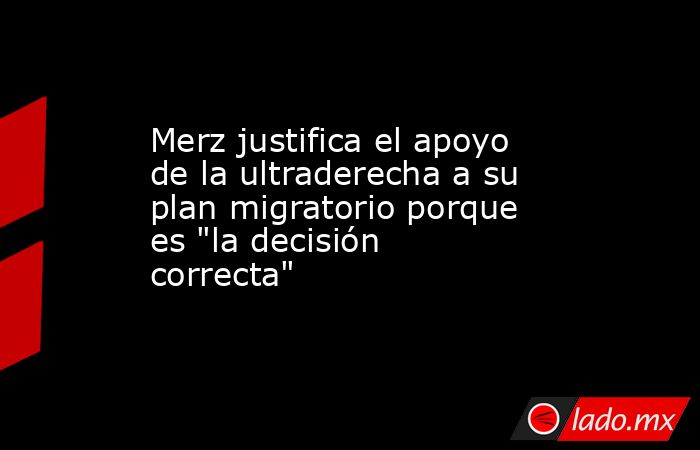 El principal líder de la oposición alemana, el conservador Friedrich Merz, ha justificado que la ultraderechista Alternativa para Alemania (AfD) vaya a respaldar dos mociones para endurecer las leyes de asilo y migración, ya que pese al habitual cordón sanitario establecido con esta corriente política se trata de "la decisión correcta".