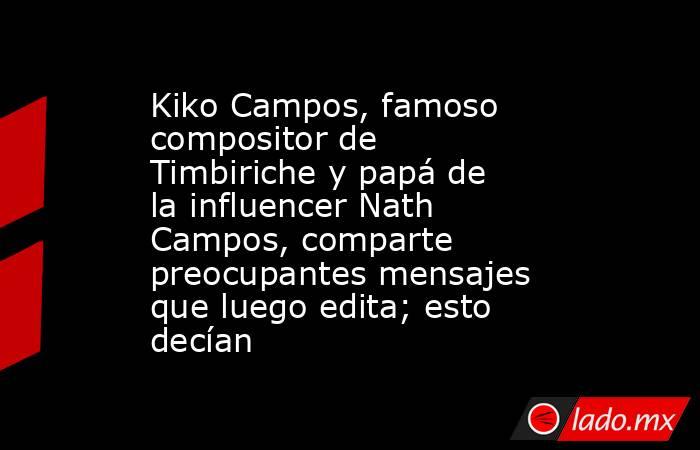 Kiko Campos, famoso compositor de origen chileno que creó algunos de los grandes éxitos de la banda Timbiriche, ha generado alerta entre sus seguidores en Instagram pues en un par de publicaciones escribió extraños mensajes que posteriormente editó.