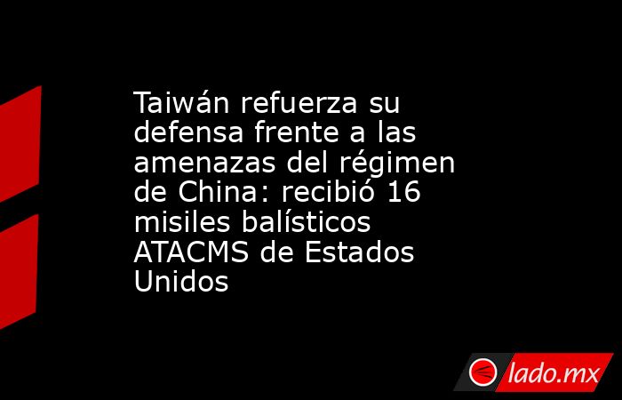 Taiwán recibió un primer lote de 16 misiles balísticos ATACMS procedente de Estados Unidos, un tipo de armamento que contribuirá a mejorar las capacidades defensivas de la isla frente a la creciente presión militar de China, informó este martes el periódico local Taipei Times.