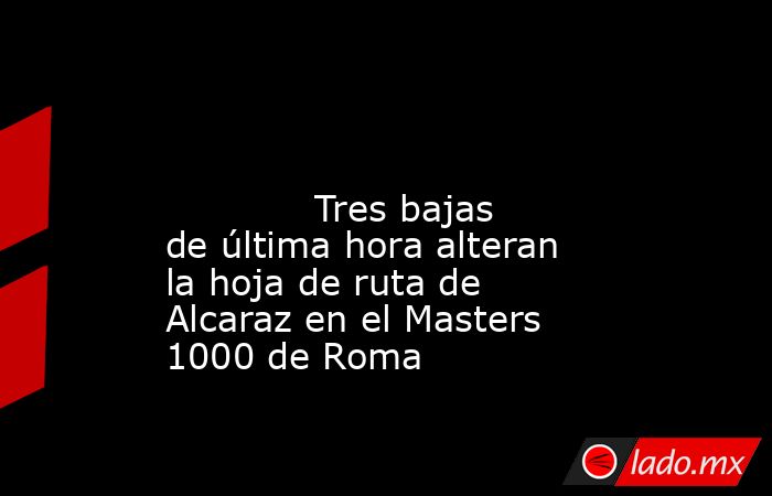 Carlos Alcaraz debutará el viernes en el Masters 1000 de Roma. El murciano reaparece en tierras italianas tras perderse por lesión el Mutua Madrid Open y, como cabeza de serie, lo hará en segunda ronda.