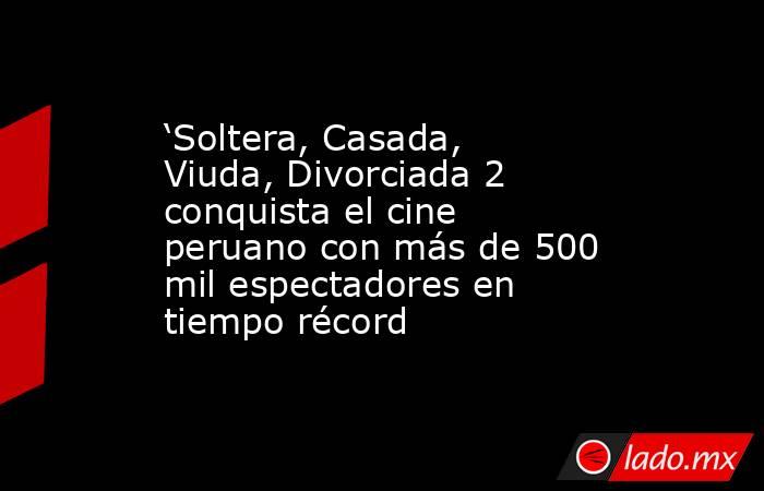 A tan solo tres semanas de su estreno, ‘Soltera, Casada, Viuda, Divorciada 2 ha logrado ser todo un éxito en el cine peruano superando los 500 mil espectadores en taquilla.