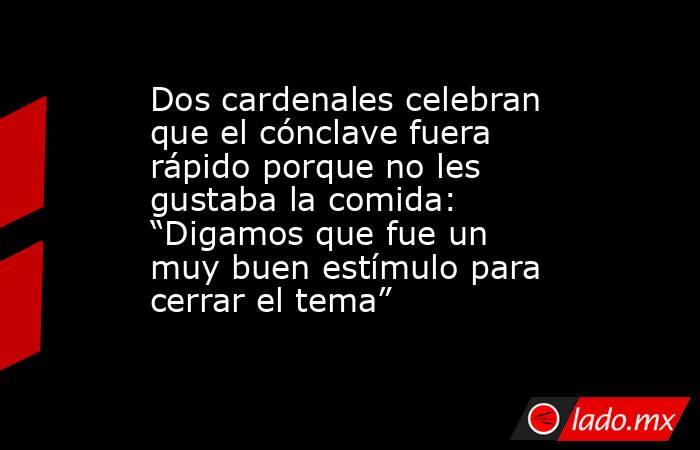 Los críticos con el menú del cónclave son estadounidenses, como el papa. Informa CNN que Timothy Dolan, arzobispo de Nueva York, se sintió decepcionado y no precisamente por la elección de Prevost: “Digamos que -la comida- fue un buen, muy buen estímulo para cerrar el tema”, dijo riéndose. Le respalda el también cardenal Joseph Tobin, arzobispo de Newark, que quitó hierro asegurando que terminado el jueves les sirvieron “una comida increíble”. “Esperaron a que termináramos el trabajo”, bromea Tobin.