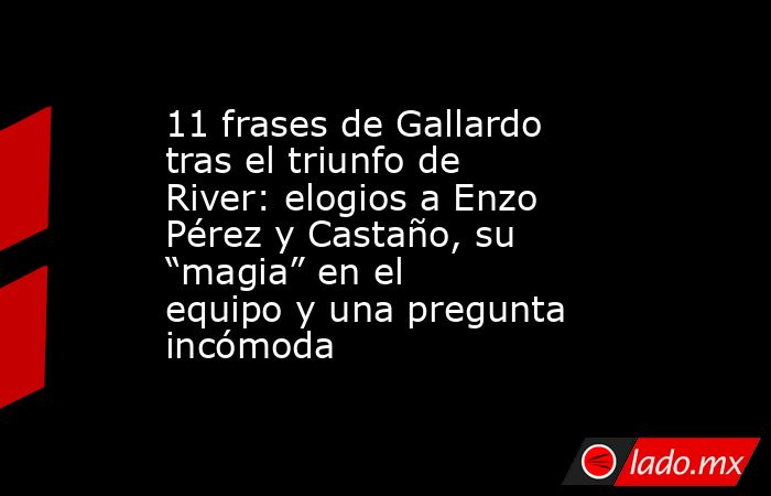 Por último, respecto al apretado calendario que tiene por delante River Plate, donde deberá enfrentarse a Independiente del Valle por Copa Libertadores el próximo jueves, comentó: “Mañana ya estamos pensando en ese partido y debemos lograr un buen funcionamiento que nos permita sacar el partido adelante”.