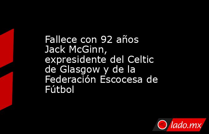 El Celtic FC ha expresado este miércoles sus condolencias debido al fallecimiento con 92 años de Jack McGinn, antiguo presidente del propio club de Glasgow y también de la Federación Escocesa de Fútbol (Scottish FA, o SFA).