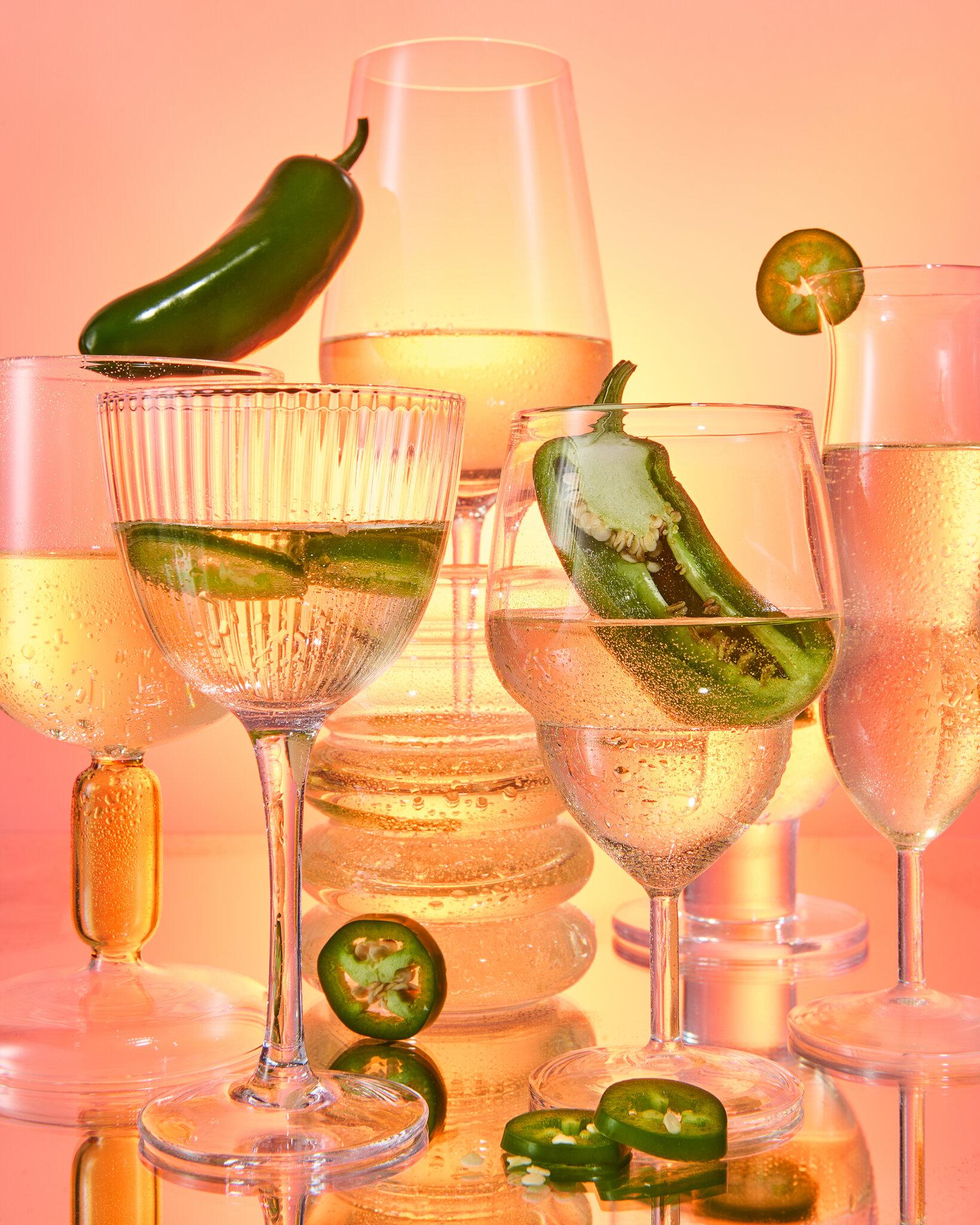 Pero en las redes sociales, donde el hot dog de caviar tiene su hogar, echar unas rodajas de jalapeño en un vaso frío de vino blanco es la última moda a la hora de beber.