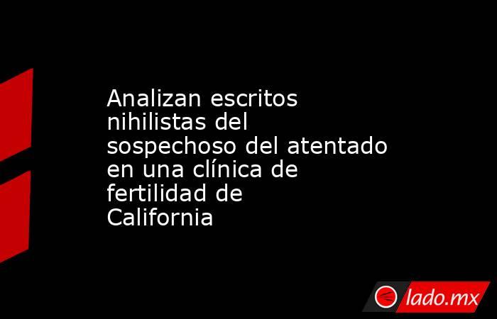 Los investigadores revisaban el lunes los escritos de un hombre de 25 años considerado responsable de una explosión que devastó una clínica de fertilidad en el sur de California durante el fin de semana.