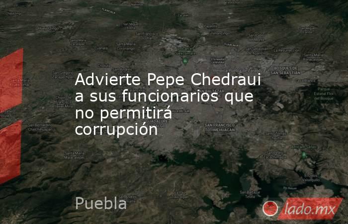 El presidente municipal de Puebla, Pepe Chedraui, advierte a sus funcionarios que no permitirá corrupción y reportó que ya fueron dadas de baja dos personas del área de Normatividad por incurrir en prácticas abusivas con ciudadanos en Plaza Pabellón Las Torres.