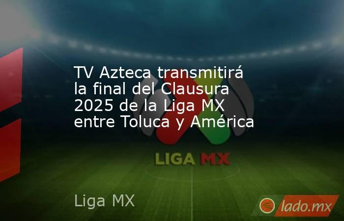 TV Azteca confirmó este martes que transmitirá los partidos de la seria final del Clausura 2025 de la Liga MX entre Toluca y América, por lo que los aficionados tendrán otra opción para poder ver la definición del título.
