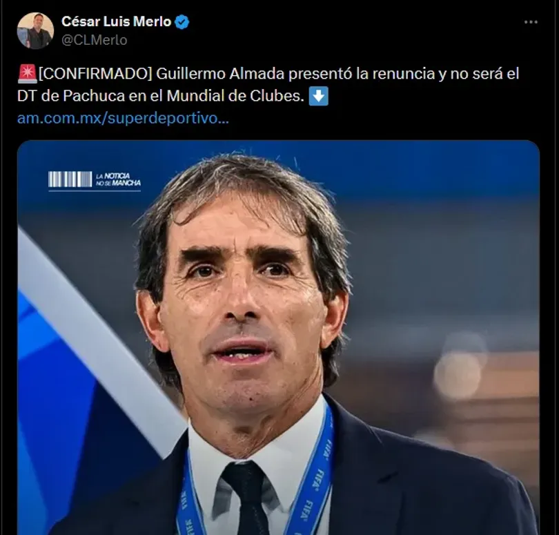 Guillermo Almada presentó la renuncia y no será el DT de Pachuca en el Mundial de Clubes“.