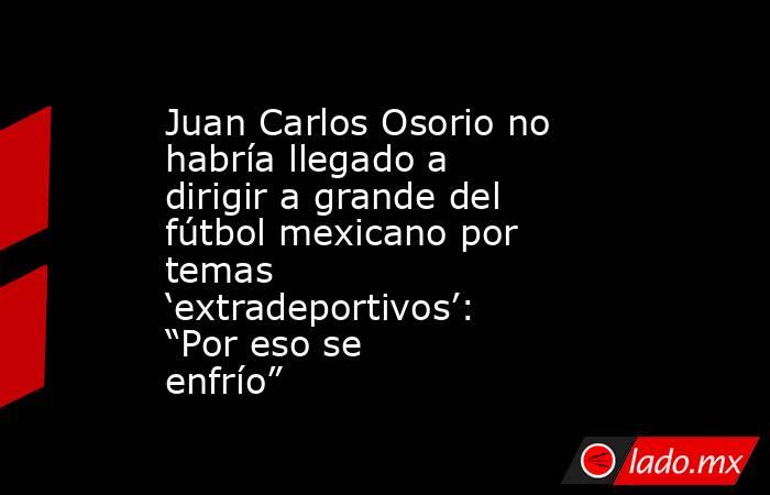 Pues bien, se conoció desde la prensa deportiva de México que el motivo por el cual no llegó Juan Carlos Osorio al rebaño sagrado (apodo por el cual se conoce al Chivas de Guadalajara), fue por su comportamiento extradeportivo.