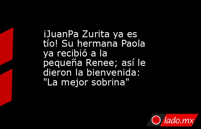 Reciben a Renee, sobrina de JuanPa ZuritaUno de los mensajes que destacó fue el del empresario, influencer y actor JuanPa Zurita quien aseguró estar más que contento por el nacimiento de su sobrina, a quien catalogó como la mejor de todas; al tiempo de dejar una felicitación para la nueva mamá.