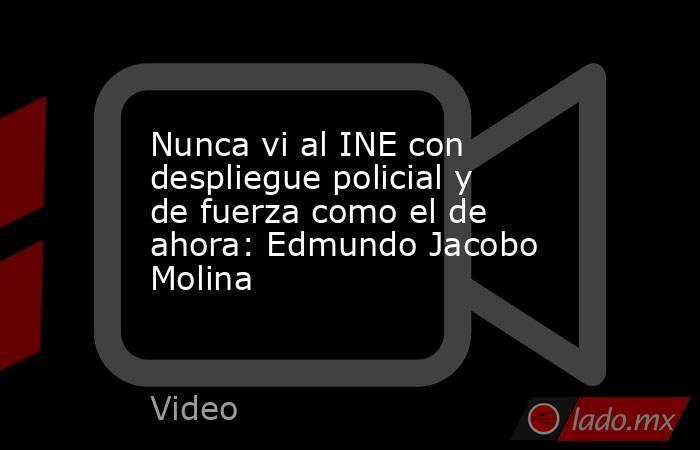 Edmundo Jacobo Molina, exsecretario ejecutivo del Instituto Nacional Electoral (INE), alertó en "Aristegui en Vivo", que en los casi 15 años en los que trabajó en esa institución nunca vio un despliegue policiaco y de fuerza en las instalaciones como el que el realizado este 28 de mayo ante la posible protesta y bloqueo de la Coordinadora Nacional de Trabajadores de la Educación (CNTE).