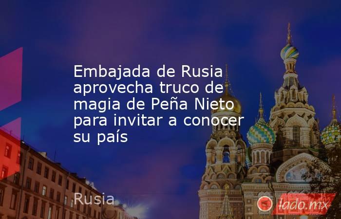 La Embajada de Rusia en México aprovechó la reaparición del ex presidente Enrique Peña Nieto esta semana en República Dominicana para invitar a la gente a visitar su nación.