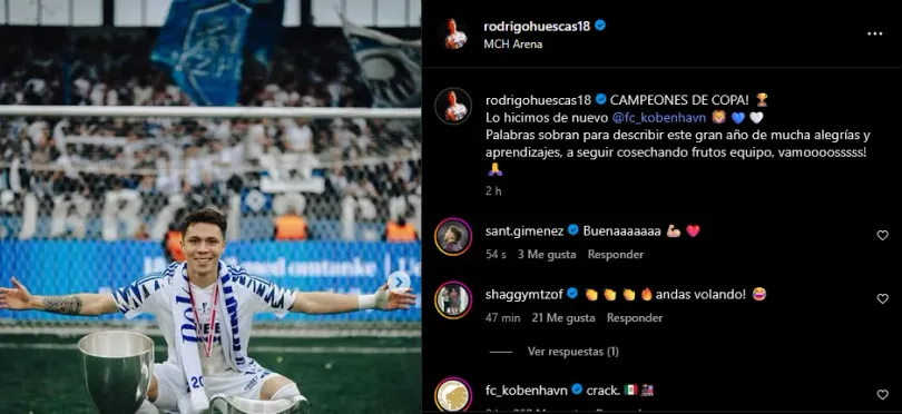 La reacción de Huescas al nuevo títuloA través de su cuenta personal de Instagram, el joven de la Selección Mexicana expresó: “CAMPEONES DE COPA! Lo hicimos de nuevo Copenhague! Palabras sobran para describir este gran año de mucha alegrías y aprendizajes, a seguir cosechando frutos equipo, vamoooosssss!”.