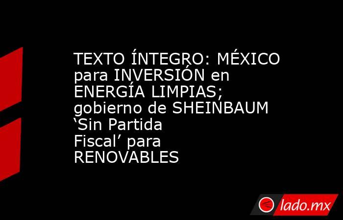 TEXTO ÍNTEGRO: MÉXICO para INVERSIÓN en ENERGÍA LIMPIAS; gobierno de SHEINBAUM ‘Sin Partida Fiscal’ para RENOVABLES Punto Por Punto
