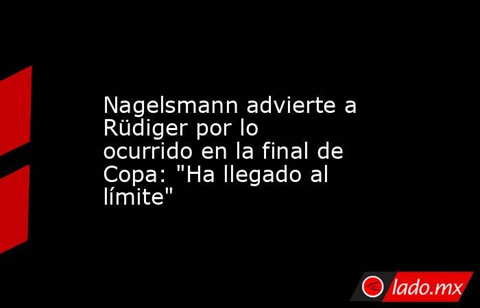 Rüdiger no está con la selección alemana en este parón internacional. El motivo, su operación de rodilla, pero a pesar su ausencia, el del Real Madrid apareció en la comparecencia de Nagelsmann, seleccionador germano, ante los medios. Al técnico le preguntaron sobre la actitud de Rüdiger en la final de Copa, donde le lanzó un objeto al colegiado y tuvo que ser frenado por los miembros del banquillo.