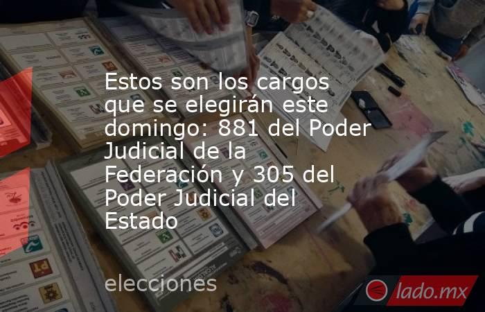Mientras que a nivel estado, se elegirán los cargos de Magistraturas del Tribunal de Disciplina Judicial, Magistraturas del Tribunal Superior de Justicia y Juzgados de Primera Instancia y Menores.