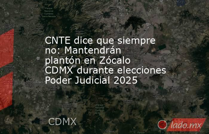 La Coordinadora Nacional de Trabajadores de la Educación (CNTE) dice que siempre no se va y mantendrán plantón en Zócalo de la Ciudad de México (CDMX) durante elecciones Poder Judicial 2025.