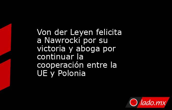 La presidenta de la Comisión Europea, Ursula von der Leyen, ha felicitado este lunes al euroescéptico Karol Nawrocki por su victoria en las elecciones presidenciales celebradas el domingo frente al oficialista Rafal Trzaskowski y ha expresado su confianza en que la Unión Europea (UE) "continuará su excelente cooperación" con el país europeo.