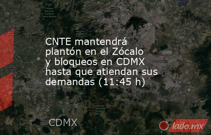 Integrantes de la Coordinadora Nacional de Trabajadores de la Educación (CNTE) informaron que mantendrán el plantón en la Plaza de la Constitución, en el Zócalo capitalino, así como los bloqueos en diversos puntos de la Ciudad de México (CDMX), hasta que las autoridades atiendan sus demandas.