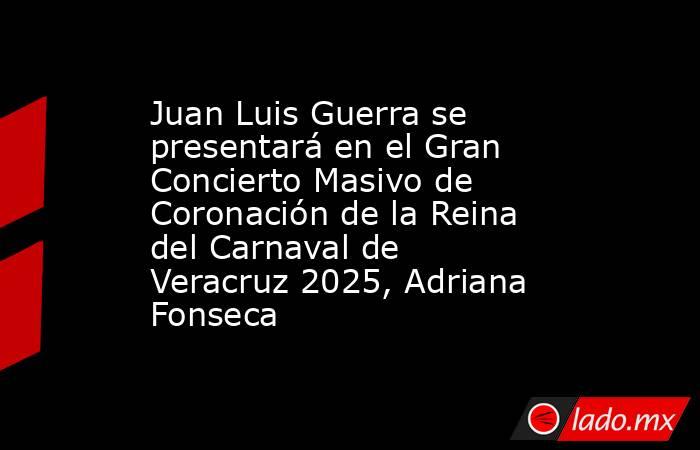 Veracruz, Ver., 3 de junio de 2025.- El icónico cantautor dominicano Juan Luis Guerra será el encargado de engalanar la noche de la coronación de la Reina del Carnaval de Veracruz 2025, Adriana Fonseca, el próximo viernes 27 de junio en la Macroplaza del Malecón.