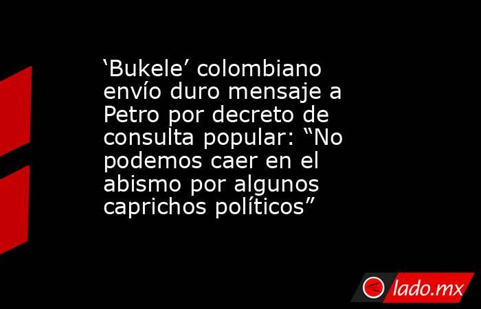 “La decisión que está tomando el presidente Petro es sumamente peligrosa, no solamente es antidemocrática y anticonstitucional, sino está llamando a enfrentar al pueblo contra el pueblo”, aseguró el alcalde en el pronunciamiento que publicó en sus redes.