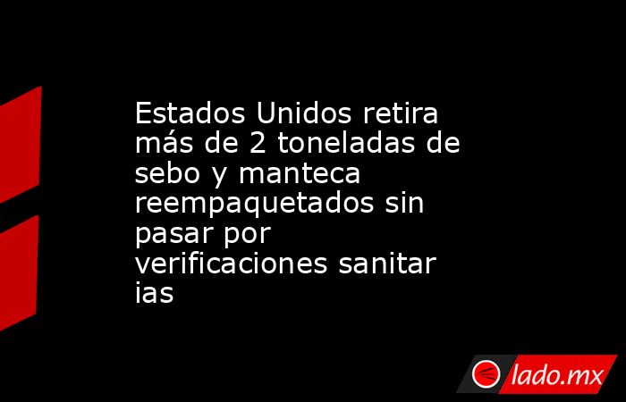 Un retiro nacional de productos de sebo de res y manteca de cerdo ha sido anunciado por el Servicio de Inspección y Seguridad Alimentaria del Departamento de Agricultura de Estados Unidos (FSIS, por sus siglas en inglés). El aviso, emitido el 3 de junio, involucra aproximadamente 6,166 libras (más de 2 toneladas) de productos distribuidos por Sulu Organics LLC, una compañía con sede en Illinois que opera como distribuidora de alimentos.
