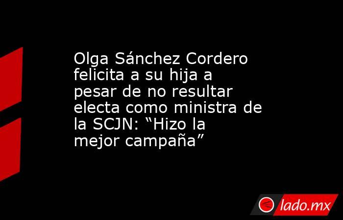 "Al concluir el proceso de la elección judicial quiero felicitar a mi hija Paula María García Villegas Sánchez Cordero, quien hizo, en voz de los expertos, la mejor campaña. Como todo lo que hace, dejó todo su ser en la campaña. Así es Paula. Los 1,388,454 votos que obtuvo fueron orgánicos, ganándose la confianza de la gente que la apoyó“, mencionó en una publicación difundida en el perfil de @M_OlgaSCordero.