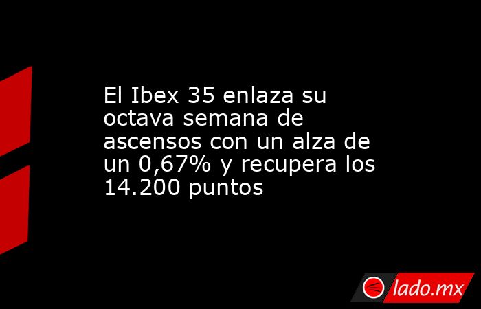 El Ibex 35 ha echado el cierre a su octava semana consecutiva de ascensos con un alza de un 0,67%, hasta situarse en los 14.247,6 puntos, en un periodo marcado por el nuevo recorte de los tipos de interés del Banco Central Europeo (BCE) y el divorcio institucional en Estados Unidos entre Donald Trump y Elon Musk.