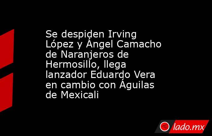 Con este cambio, sin duda, Naranjeros se hace con uno de […]The post Se despiden Irving López y Ángel Camacho de Naranjeros de Hermosillo, llega lanzador Eduardo Vera en cambio con Águilas de Mexicali appeared first on Proyecto Puente.
