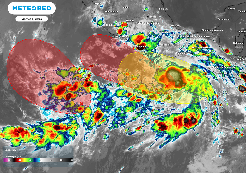 Artículo relacionado Temporada de huracanes 2025: pronóstico de Meteored para el Océano Atlántico y el Pacífico NororientalActualmente las lluvias se mantienen reforzándose hacia el oeste-suroeste del país y es gracias a 2 de las perturbaciones tropicales que se encuentran organizándose en el Pacífico Nororiental, frente costas del Suroeste mexicano.