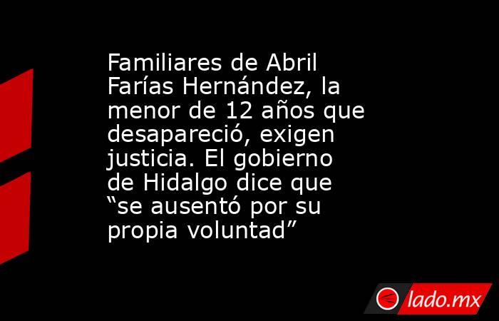 Por otro lado, el gobierno de Hidalgo señala que la menor se fue por su propia voluntad con su novio. El 6 de junio familiares y colectivos de la sociedad civil han protagonizado protestas y bloqueos en carreteras de Hidalgo, incluyendo la México-Pachuca, para exigir la localización de Abril Farías Hernández. Las manifestaciones, que iniciaron tras dos días sin información sobre su paradero, han generado tensión con cierres viales que afectaron la movilidad en la ciudad.