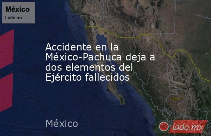 Dos presuntos elementos del Ejército Mexicano perdieron la vida la mañana de este sábado tras un accidente en la carretera federal México-Pachuca, a la altura del entronque con la autopista del mismo nombre, en la Glorieta Ingeniero Everardo Rodríguez Balderas, municipio de Tecámac.