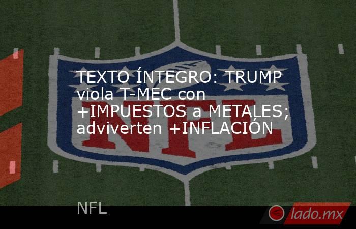 TEXTO ÍNTEGRO: TRUMP viola T-MEC con +IMPUESTOS a METALES; adviverten +INFLACIÓN Punto Por Punto