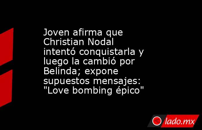 Acusan a Nodal de hacer "love bombing"En su video relató que al final el sonorense la terminó "cambiando" por la modelo, actriz y cantante, Belinda.
