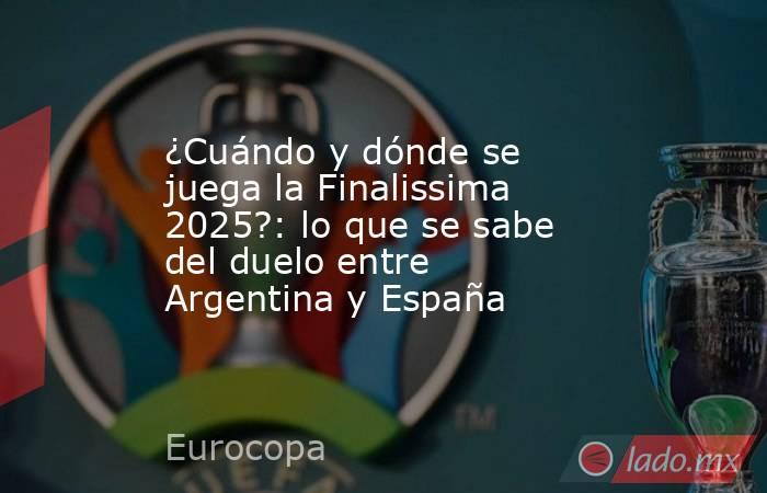 CDMX, México.- La Finalissima 2025 enfrentará a los campeones de la Copa América y la Eurocopa 2024, es decir, Argentina vs España. Se trata del esperado cruce entre los ganadores de los torneos continentales más importantes del mundo, organizado en conjunto por la UEFA y la Conmebol. Sin embargo, aunque originalmente estaba previsto para 2025, su realización ha quedado en suspenso y podría aplazarse hasta después del Mundial 2026.