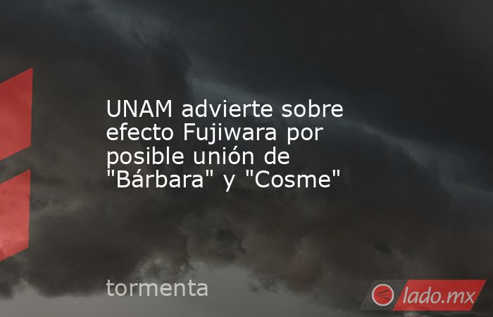 El huracán Bárbara, que el lunes 9 de junio se convirtió en categoría uno, avanza rumbo a las costas mexicanas por el océano Pacífico, por lo que se prevé que se fusione con la tormenta tropical Cosme,fenómeno conocido como el efecto Fujiwara; advirtió la Universidad Nacional Autónoma de México (UNAM).
