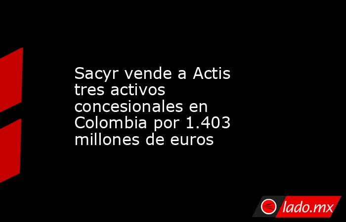 Sacyr ha vendido al fondo de inversión en infraestructuras sostenibles Actis tres activos concesionales en Colombia por 1.600 millones de dólares (1.402,6 millones de euros), incluyendo deuda y capital, según ha informado este martes la compañía en un comunicado.