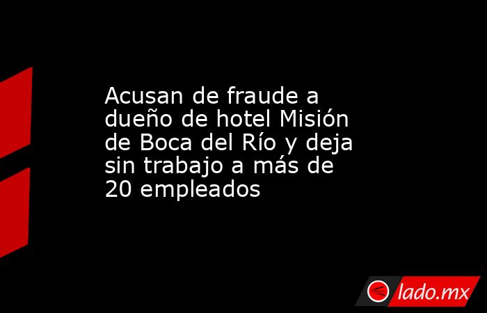 El cargo Acusan de fraude a dueño de hotel Misión de Boca del Río y deja sin trabajo a más de 20 empleados apareció primero en .