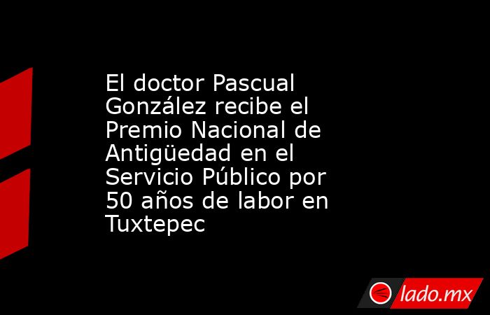 Redacción El Piñero | Corresponsalía Este miércoles, el doctor Pascual González Fuentes fue reconocido con el Premio Nacional de Antigüedad en el Servicio Público por sus 50 años de dedicación al Hospital General de Tuxtepec.