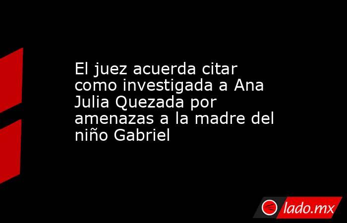 El Juzgado de Instrucción número 1 de Almería ha acordado citar a Ana Julia Quezada, la mujer que cumple prisión permanente revisable por el asesinato del niño Gabriel Cruz, en el marco de las diligencias abiertas por presuntas amenazas de muerte desde la prisión de Brieva (Ávila) a la madre del pequeño, Patricia Ramírez, quien denunció los hechos el pasado 31 de diciembre.