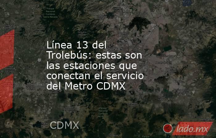 En el trayecto del Trolebús de la Línea 13, las unidades pasan por estaciones del STC Metro, lo cual brinda una opción de movilidad a las personas. La principal línea por la que pasan es la Línea 8 del Metro (Constitución de 1917 - Garibaldi/ Lagunilla), pues la terminal del Trolebús está a un costado de la entrada al Metro.