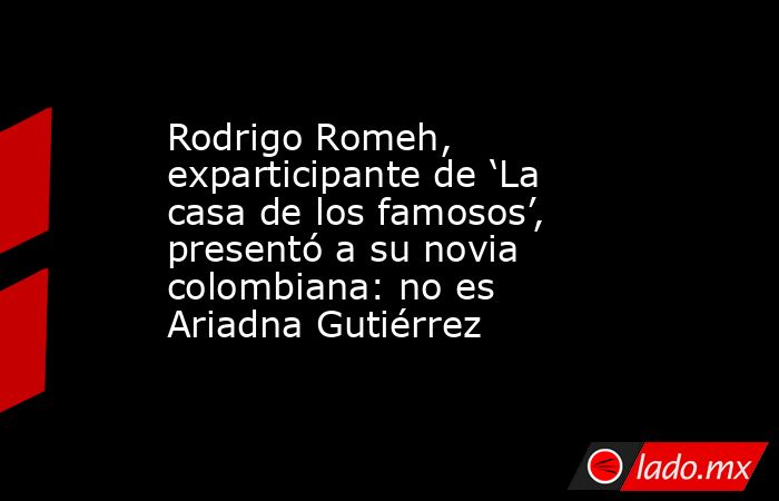 Hace unos días, Romeh anunció que se había involucrado en una nueva relación sentimental, generando expectativa debido a que mostró algunas fotos con su nueva pareja, pero evitando mostrar su rostro. Finalmente, el subcampeón de La casa de los famosos presentó a su novia, sorprendiendo al mostrar que se trataba de una colombiana, pero no era Ariadna Gutiérrez.