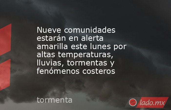 Andalucía, Aragón, Islas Baleares, Castilla y León, Castilla-La Mancha, Cataluña, Extremadura, Galicia y Comunidad de Madrid estarán en alerta amarilla este lunes por altas temperaturas, lluvias, tormentas y fenómenos costeros, según la predicción de la Agencia Estatal de Meteorología (Aemet).