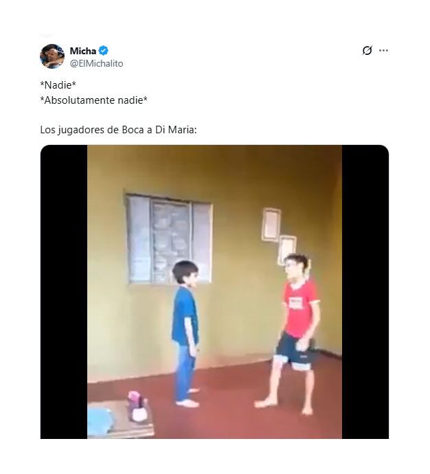 Quien también fue blanco de los memes fue Ángel Di María. Fideo, flamante incorporación de Rosario Central, está disputando sus últimos partidos con el conjunto portugués y recibió una dura marca por parte de los jugadores xeneizes. De todos modos, el campeón del mundo con la selección argentina fue quien cambió el penal por gol y estableció el 2 a 1, poco antes de que finalizaran los primeros 45 minutos.